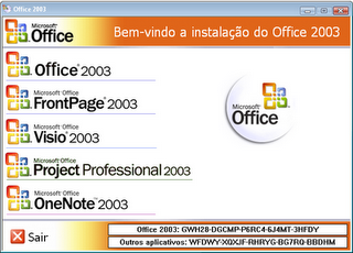 Particularmente acho o pacote Office 2003 a melhor versão criada até hoje, tanto que ainda não aderi para a Office 2007. Esta já vem integrada o FrontPage 2003, quando você insere o CD, automaticamente roda uma tela semelhante a esta em cima.